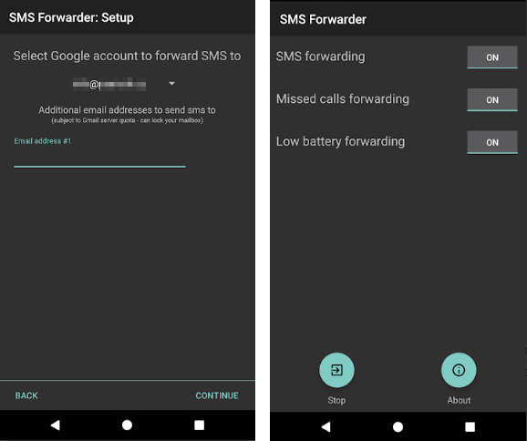 2. 设置短信转发器并使用您的 Google 帐户登录。