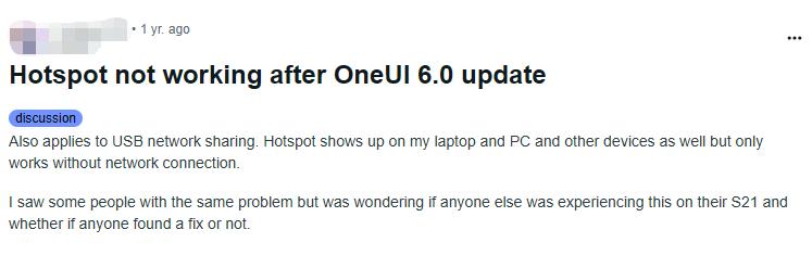 一些用户还报告了更新后未工作的三星热点。真正发生的是更新包含一些小故障代码,这会导致热点问题。