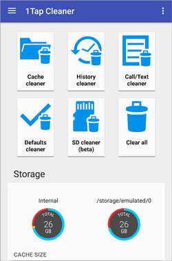 一键单击,它可以帮助您无需根许可即可释放内部存储空间。但是,由于Google广播策略的变化,该软件无法再提供SMS并致电记录清洁功能。