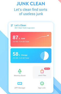 - 一个助推器和清洁应用程序,可单击一键清洁Android垃圾和无用的数据。