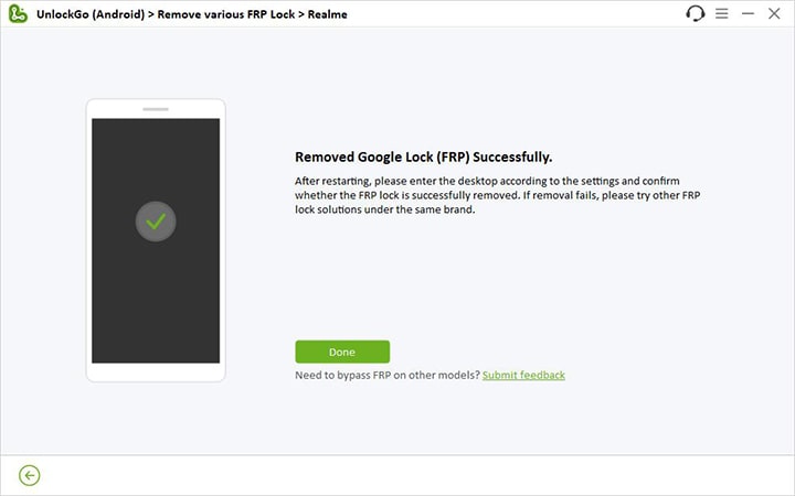 步骤7恭喜!您已成功从 Realme 设备中删除 FRP 锁。