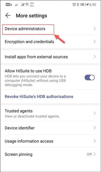 5.转到“设置”,然后“锁定屏幕和安全”,找到“其他安全设置”,打开“设备管理员”,然后关闭所有活动的管理员。