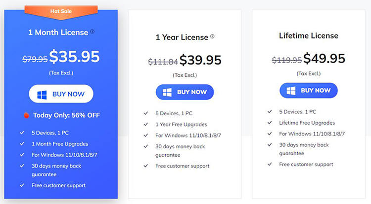 UltFone Android 数据恢复不是免费的,但它提供了多种定价计划。 1 个月许可证的折扣价为 55.95 美元,原价为 119.95 美元。该计划涵盖 5 台设备和 1 台 Mac,提供 1 个月的免费升级,并提供 30 天退款保证。 1 年许可证的价格为 59.95 美元(原价 167.84 美元),提供一年内相同的设备覆盖范围和升级。终身许可证从 189.95 美元降至 69.95 美元,可终身享受这些好处。所有这些计划都提供免费的客户支持。免费版本通常允许扫描和预览数据,但恢复功能仅限于付费版本。