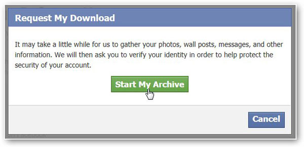 - 点击“下载存档”,zip 文件将下载到您的计算机,您可以在其中访问所有 Facebook 信息。