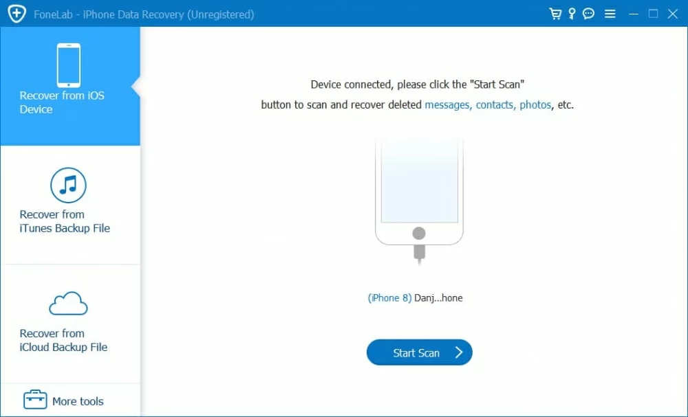 如果您的 iPhone 仍处于蓝屏死机 (BSOD) 状态,您还有其他几种选择。 Fonelab 提供了一款名为 iOS System Recovery 的软件实用程序,可帮助您识别 iPhone 的 iOS 问题并解决它们,而不会丢失设备数据。这是专门针对 Apple 用户的故障排除实用程序。