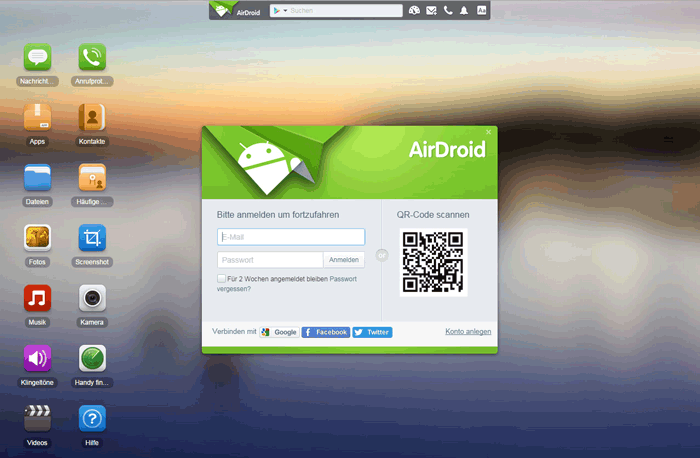 - 建立连接后,导航至AirDroid网络平台上的“照片”图标。
