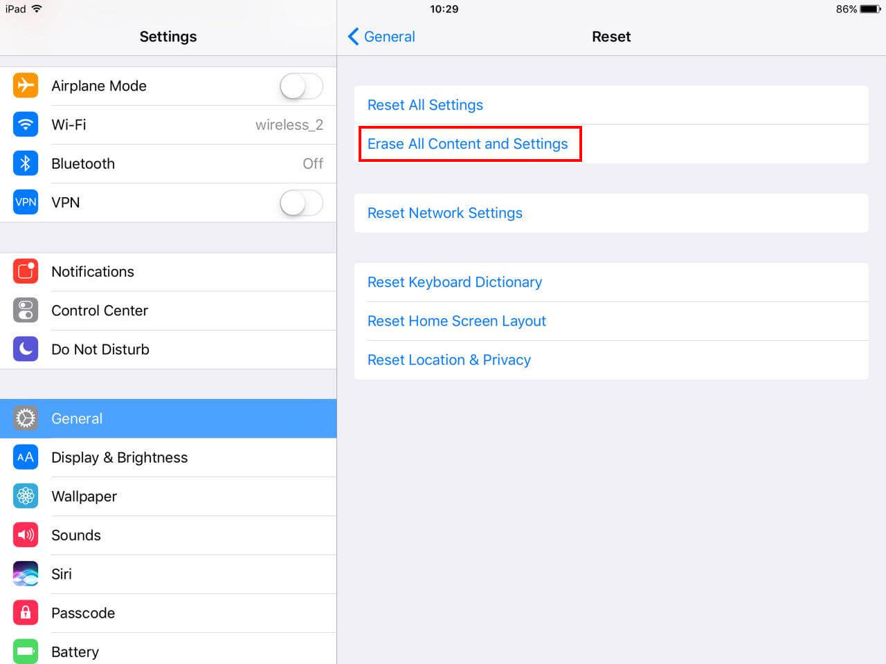 - 4. 输入密码后,您的设备将要求您确认是否要删除所有内容。要确认,请点击“擦除”。