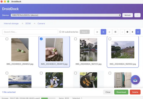 DroidDock 提供基于浏览器的仪表板,无需电缆即可通过 Wi-Fi 进行 Android 文件管理。用户可以直接从Web界面上传、下载、复制、删除和预览文件。跨平台使用使该服务为 Windows、Mac、Linux 和 Chromebook 用户提供便利。当首选无电缆控制时,许多人采用它作为 OpenMTP 替代方案。
