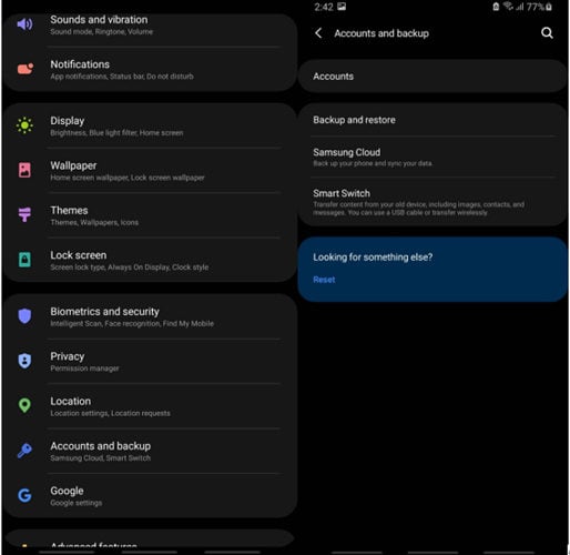 - 打开三星设备上的“设置”应用程序,然后导航至“帐户和备份”或“云和帐户”,具体取决于您的设备型号。