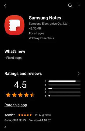 ⭕ 过时的应用程序版本:使用过时版本的 Samsung Notes 应用程序可能会导致同步问题。应用程序更新通常包括错误修复和增强功能(包括同步功能)的改进。检查 Google Play 商店或 Samsung Galaxy 商店,确保您的应用程序已更新到最新版本。