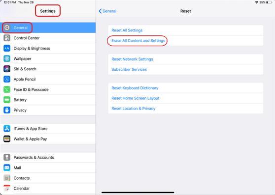 - 4. 输入您的 iPad 屏幕密码以确认您打算擦除设备。