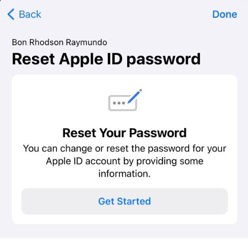 - 步骤2:点按“密码与安全”>“重置 Apple ID 密码”>“开始使用”。