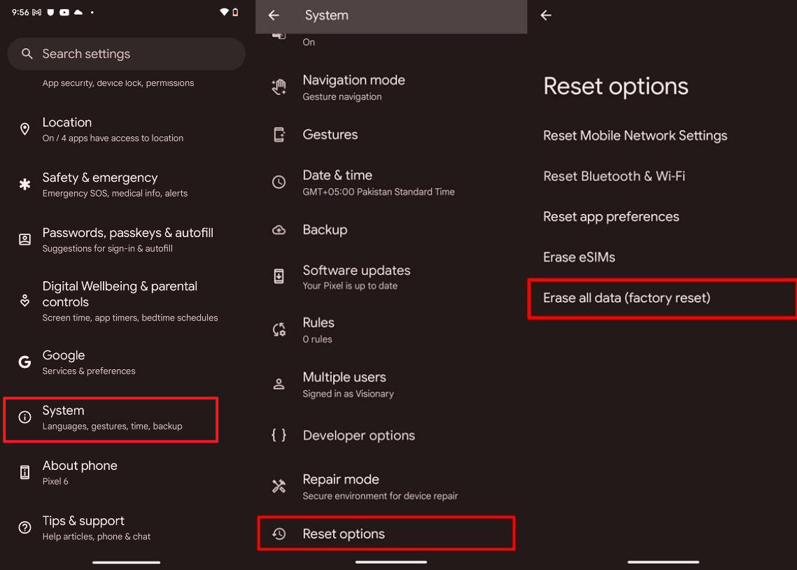 如果恶意软件仍然存在,您可能需要执行出厂重置。在开始恢复 Pixel 之前进行备份非常重要。下面我们看一下恢复出厂设置的步骤: