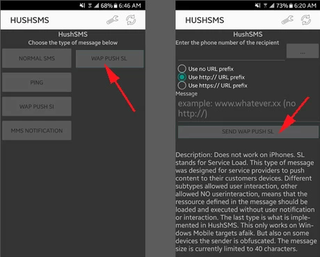 1.安装后打开HushSMS应用程序,点击WAP 推送服务。