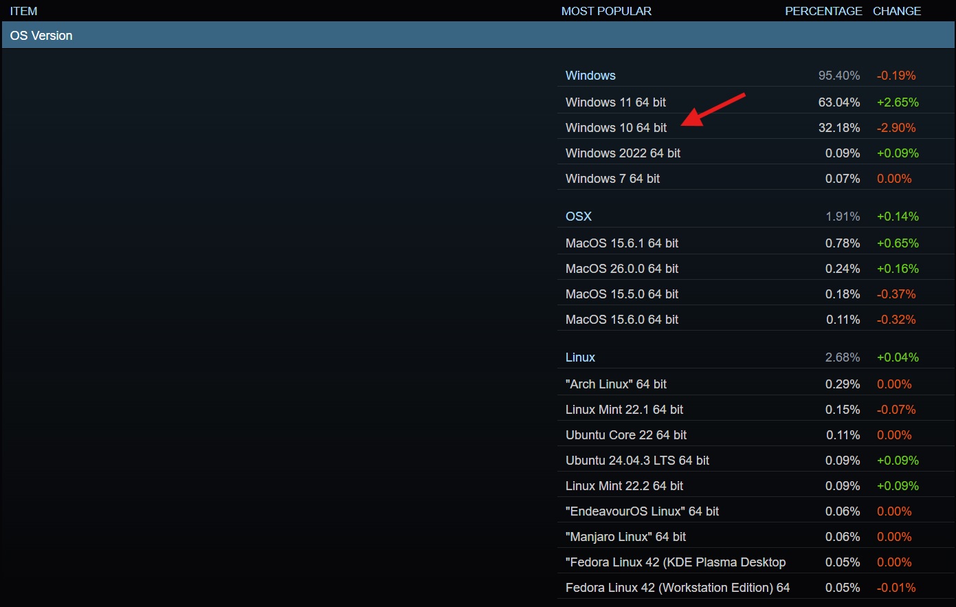 根据大约 63% 的游戏玩家使用 Windows 11,而 32% 的玩家仍在使用 Windows 10。