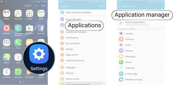 - 导航到“设置”,然后选择“应用程序”>“应用程序管理器”。
