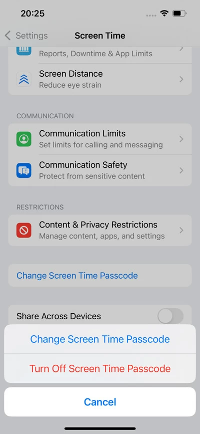 修复 1 - 使用屏幕时间密码检查屏幕时间限制
