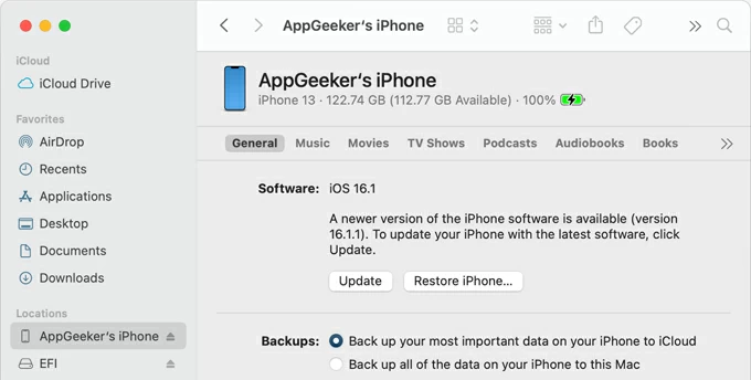 自 macOS 10.15 Catalina 起,Finder 取代了 iTunes 来管理 iPhone。它内置于较新的 Mac 中,允许您重置 iPhone 并通过物理连接恢复访问权限,即使您忘记了密码或您的设备被 iPhone 不可用或安全锁定屏幕锁定。