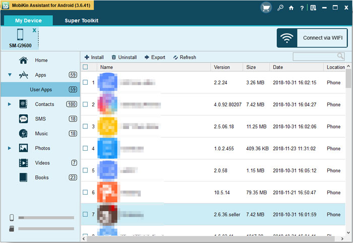 嗯,现实中事情可以更容易。这是一个android管理软件,名为Android 版 MobileKin 助手或者Android 助手(Mac 版),几乎与所有 Android 设备兼容,因此 100% 安全。该软件具有管理 Android 设备所需的所有必要功能。它支持传输和管理 Android 数据,如应用程序、联系人、短信、照片、视频、音乐、电子书、文档等。最重要的是,它使您能够安装想要在三星手机上安装的新应用程序,从三星手机卸载现有但无用的应用程序,甚至将应用程序从三星手机备份到计算机。总之,Android 助手是一站式 Android 数据管理解决方案。