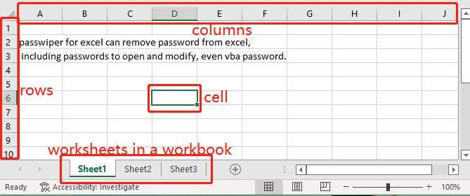 首先我们来了解一下Excel中的单元格、行、列是什么。单元格可以组成行,行可以组成列,列可以组成工作表。工作表到工作簿。这就是excel的简单知识。在这里我们将学习如何保护Excel中的单元格和单元格范围(特定单元格),因为保护所有单元格意味着锁定Excel工作表,这一步您可以单击“信息”来锁定它。