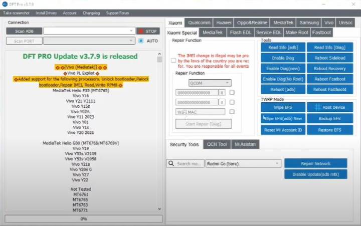 DFT Pro工具是用于移动维修技术的多合一解决方案。这些功能包括FRP旁路,闪烁,IMEI修复,引导加载程序解锁和网络解锁操作。该工具还可以用于修复软件问题或重置设备。这意味着它可以执行多种维修。