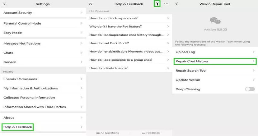 幸运的是,微信中有一个内置的修复功能,可以帮助您在这种情况下恢复聊天记录。