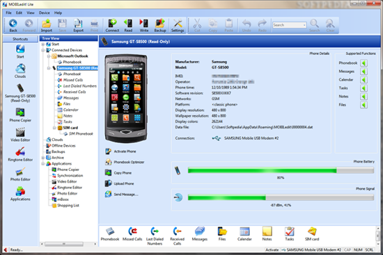 作为一款不错的 Android 手机备份到 PC 软件,MOBILedit 会自动保护您的 Android 设备,同时允许您同时浏览程序。备份文件存储在离线文件夹中。要使用该程序,请下载该软件,通过 USB 将 Android 设备连接到 PC,然后开始使用计算机键盘在移动桌面上工作。