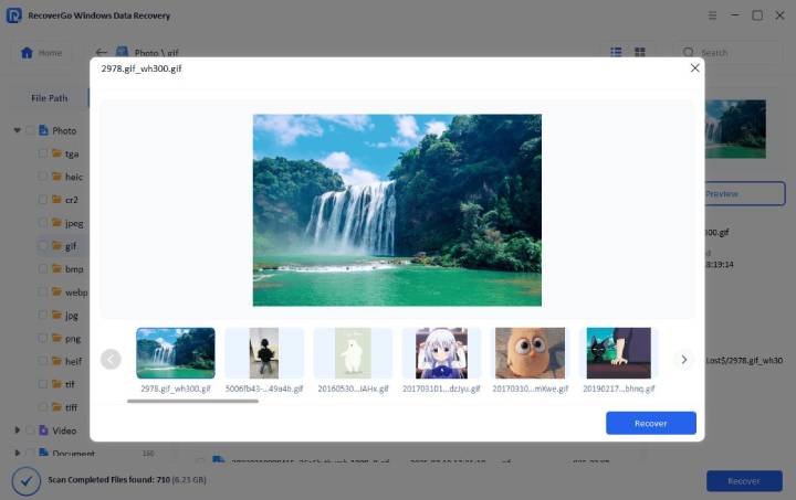 找到要恢复的数据后,单击“预览”。确认文件正确后,只需单击“恢复”按钮即可。