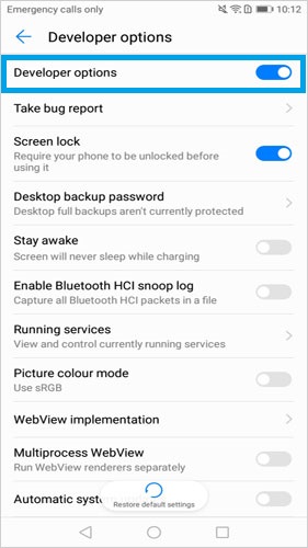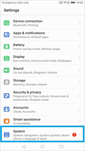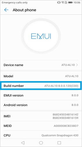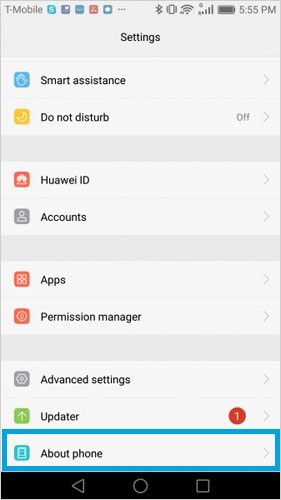 另外,在华为荣耀或P设备上启用USB调试之前,请先前往“设置”检查设备上是否可见“开发者选项”。如果没有,您应该首先启用该选项:
