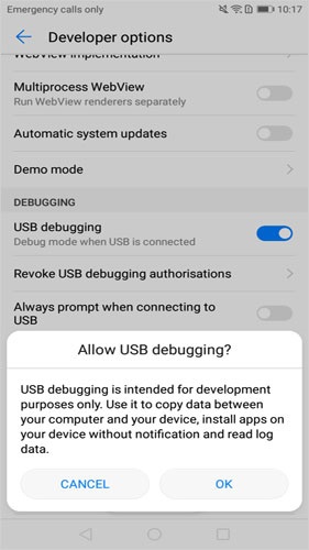 4.之后,您可能会收到一条消息,询问您是否“允许USB调试”。只需点击“好的”当您看到该消息时。