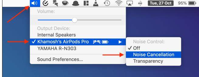 AirPods上的噪声取消是称为噪声控制功能的一部分。如上所述,airpods具有两种噪声策划模式IE