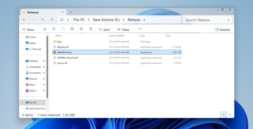 时间回到 2024 年 1 月,开发商 Maplespe已创建开源应用程序 DWMBlurGlass,可在GitHub。航空玻璃尚未正式出现,因为丙烯酸和云母效果已取代它,但有一种解决方法。