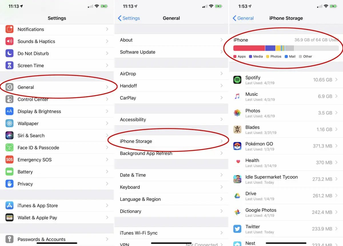 存储空间已满可能会导致无法成功下载 iMessage 中的照片。请按照以下步骤释放空间并修复 imessage 照片未加载的问题: