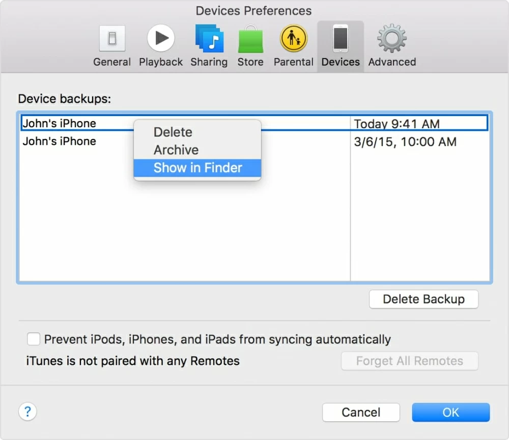 解决方案 2:列出 iTunes(或 Finder)中的所有备份