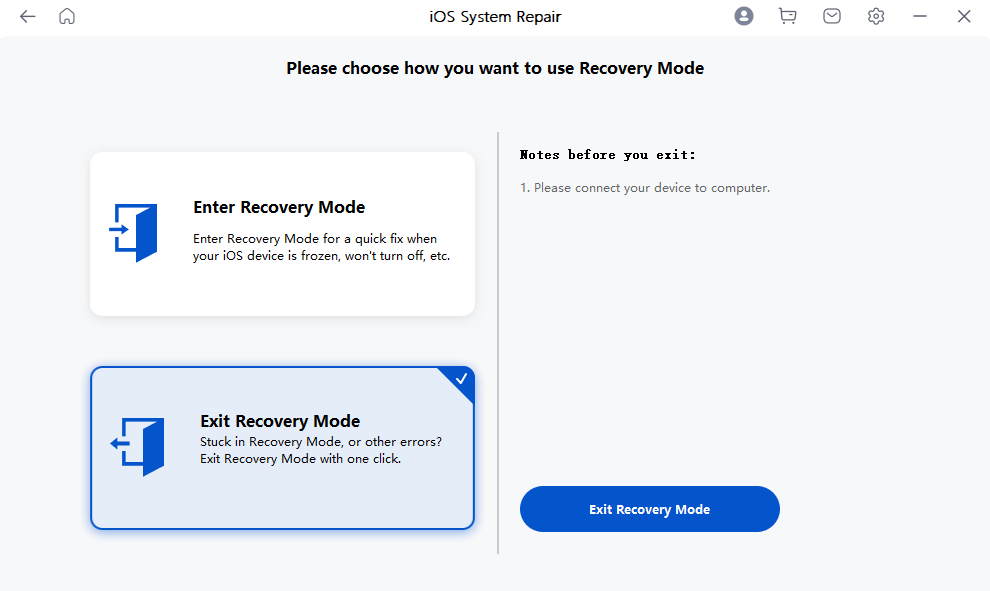 - 选择进入/退出恢复模式>退出恢复模式