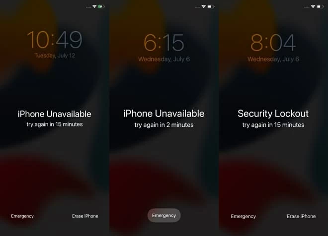如果您忘记了密码,您最好等待并尝试回忆它。连续 5 次错误尝试密码后,您将开始看到“不可用”屏幕,并显示一个计时器,要求您等待 1 到 60 分钟。