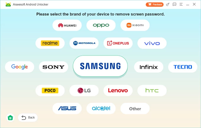 步骤2。选择删除屏幕密码模式并指定您的电话品牌 - 三星。