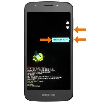 第4步:接下来,拔下摩托罗拉手机的插头,按下电源控制和音量减小按钮,使用引导加载程序模式引导至工厂模式。当出现工厂模式时,使用电源按钮选择它。