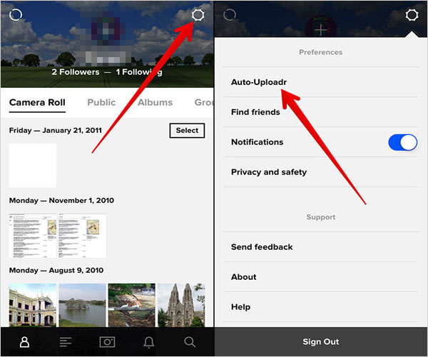 步骤3。滑动旁边的按钮自动上传照片打开该功能。