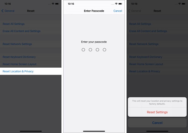 第 3 步:接下来,点击“重置位置和隐私”。