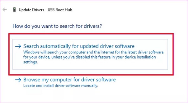 步骤 3:接下来,选择“自动搜索更新的驱动程序软件”。