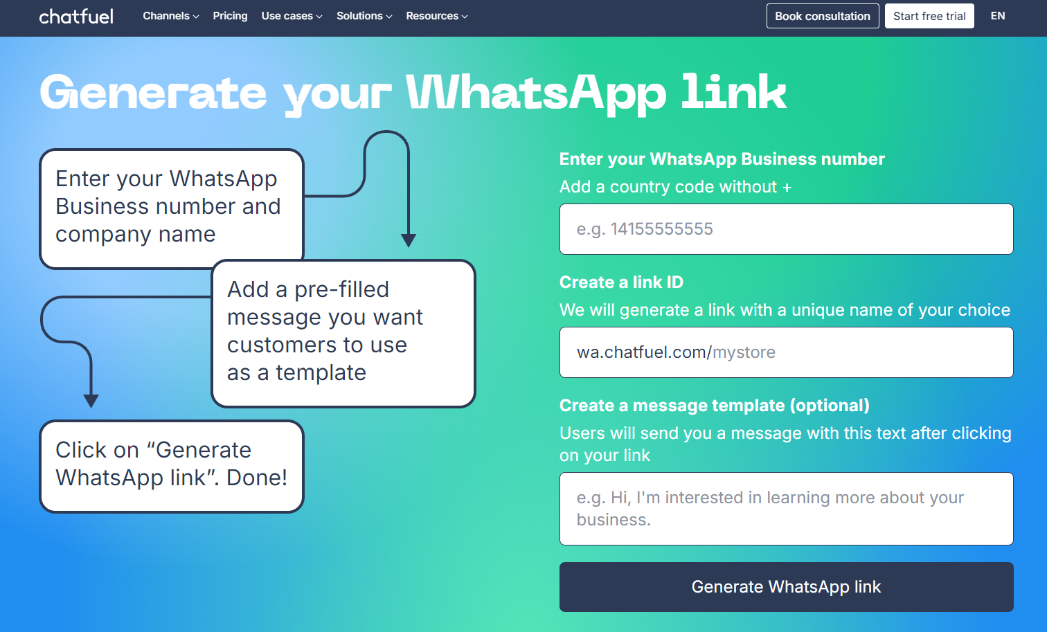 - 创建包含个性化消息的 WhatsApp 链接。