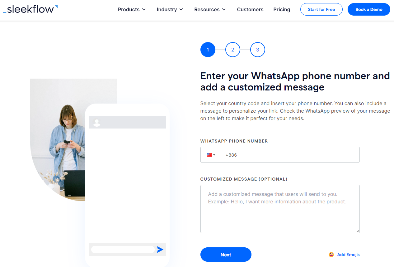 正在寻找生成 WhatsApp 链接的方法?那么就不用再犹豫了,因为我们有适合您的工具。 Sleekflow 是一款令人惊叹的工具,可帮助您通过 3 个简单步骤生成 WhatsApp 短链接。借助该程序,用户现在可以轻松创建 WhatsApp 链接,从而使客户无需保存号码即可在 WhatsApp 上发起对话。使用该程序创建 WhatsApp 链接的过程简单明了,使其成为初学者和非技术用户的最佳选择。