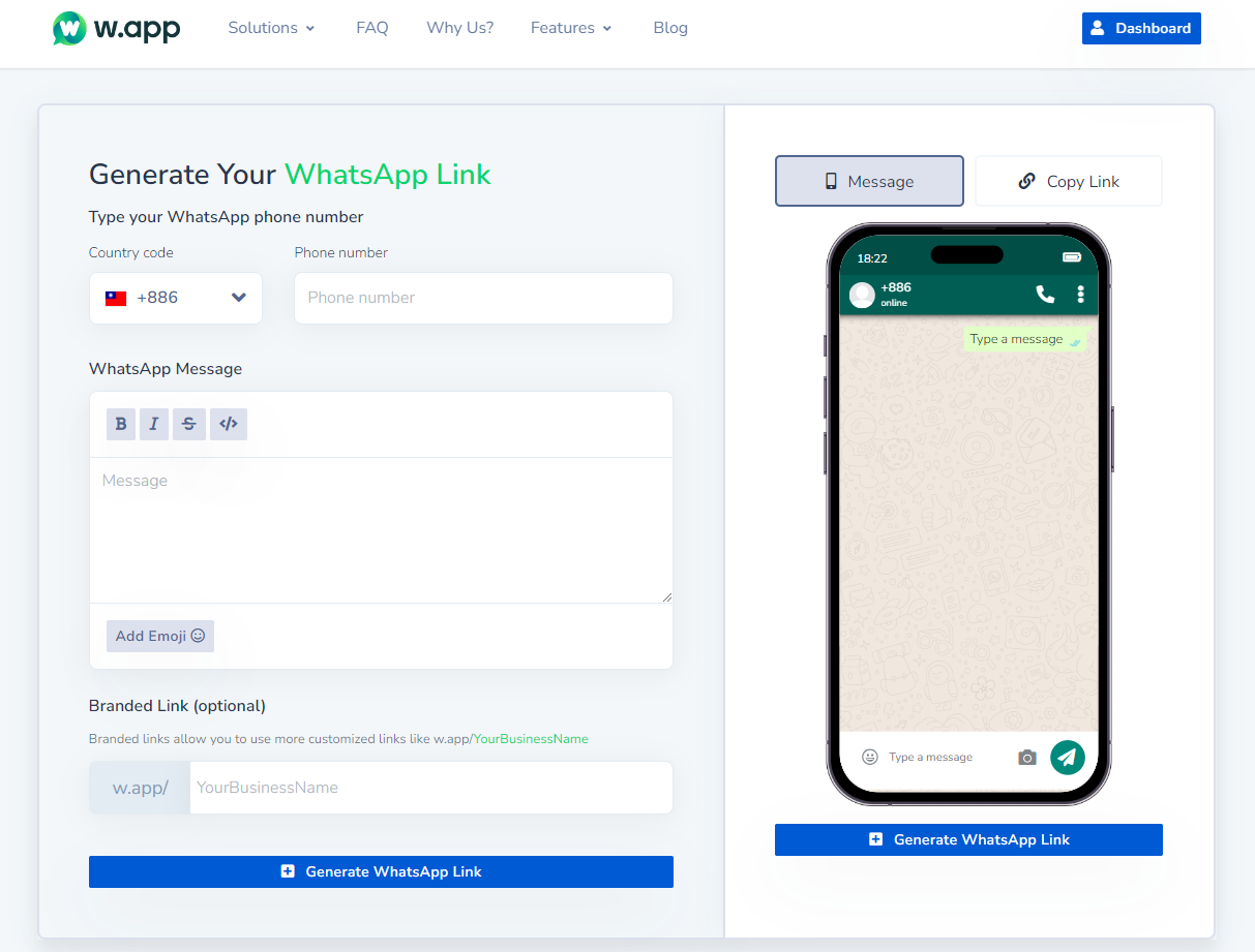 - 让您轻松生成 WhatsApp 链接。