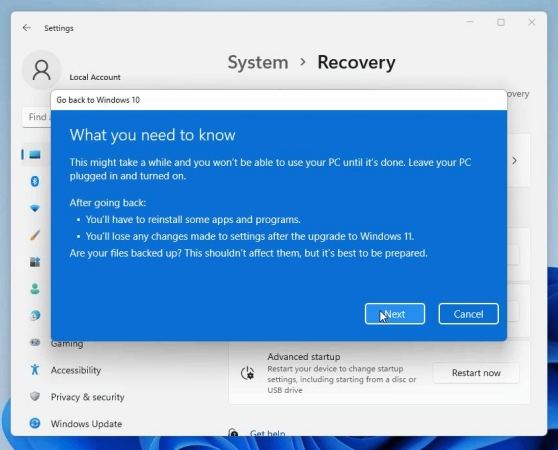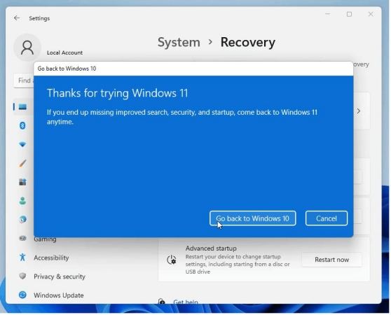 但!在大多数情况下,您将无法看到返回按钮,这可能是由于几个原因。试图返回以前的Windows版本时,您可能会遇到三种可能的情况。