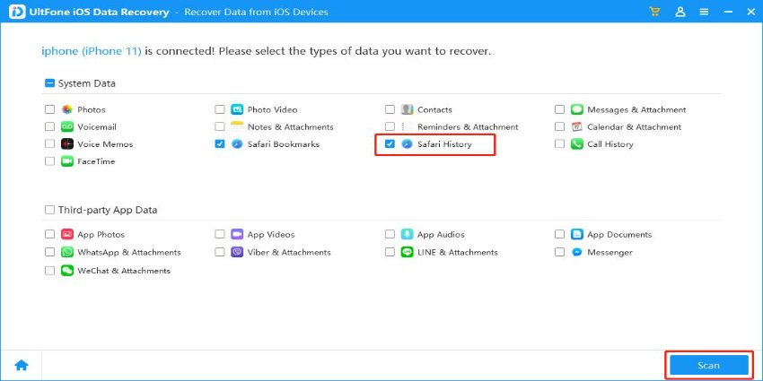 使用 UltFone iOS 数据恢复恢复已删除历史记录的步骤