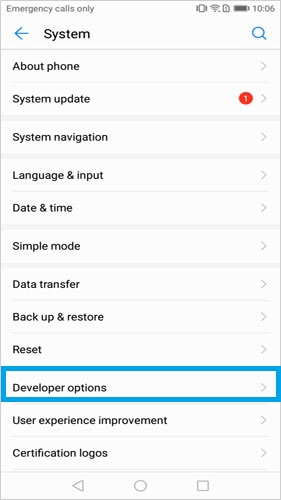 - 访问手机上的“设置”菜单,然后转到“关于手机 > MUI 版本 > 开发者选项”。