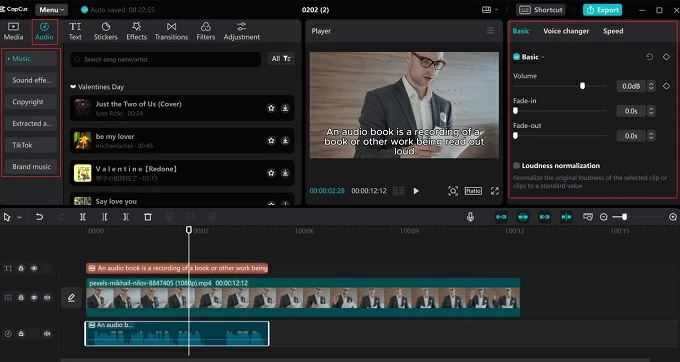 背景音乐和音效增强了视频的故事讲述能力。 CapCut 提供免版税音乐和音效库,帮助企业创建专业品质的视频,而无需担心版权问题。