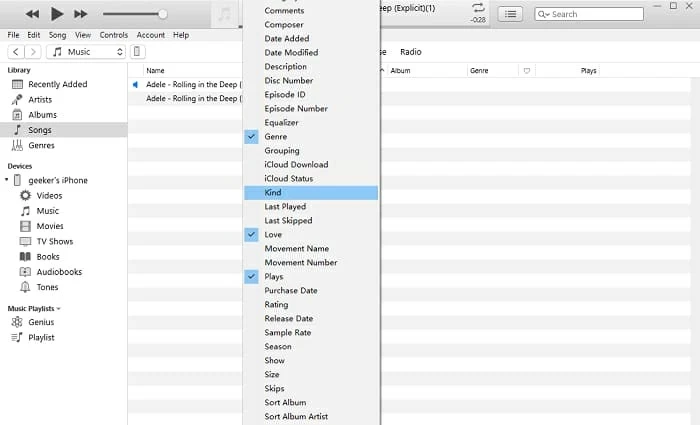 为了避免混乱,您可以删除原始的MPEG版本,也可以重命名AAC版本。如果您看不到它们的版本,请右键单击“名称”,然后从以下选项中选择“类型”。