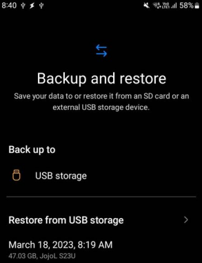 想要备份三星 SD 卡上的安全文件夹?这很容易!在“备份和恢复”菜单中,如上所示,您应该会看到备份目标的选项。选择“SD 卡”作为备份目的地。选择您要备份的内容,然后按照屏幕上的说明启动备份。